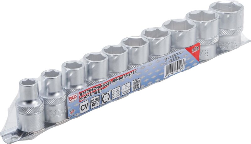 Steckschlüssel-Einsatz-Satz, Sechskant | Antrieb Innenvierkant 12,5 mm (1/2") | Zollgrößen | 10-tlg.