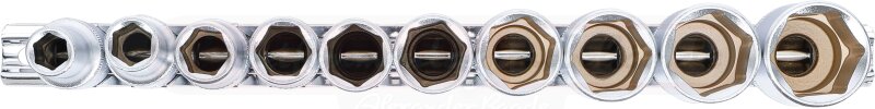 Steckschlüssel-Einsatz-Satz Sechskant, tief | Antrieb Innenvierkant 12,5 mm (1/2") | Zollgrößen | 10-tlg.
