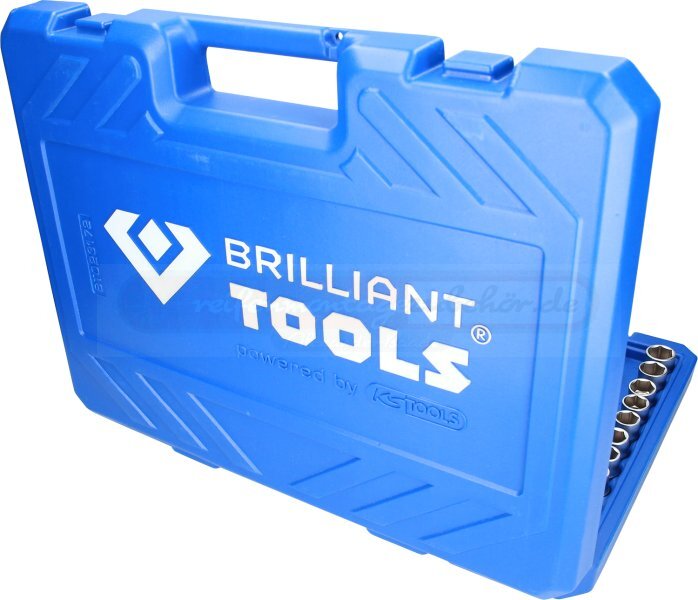 Das 172-teilige BRILLIANT TOOLS Steckschlüssel-Satz BT023172 ist nach DIN gefertigt. Das Set ist mit Knarren und Zubehör für drei unterschiedliche Innenvierkant-Antriebe ausgestattet 1/4" (6,3 mm), 3/8" (10 mm) und 1/2" (12,5 mm). Dieses Set ist der praktische Allrounder rund ums Schrauben und Lösen. Das umfangreiche Set wird in einem praktischen Koffer mit Metallscharnieren und Verschlüssen mit klemmgesicherten Werkzeugen geliefert. Die Beschriftung im Koffer ermöglicht ein rasches Finden der passenden Einsätze oder Bits. Die besonders handschonenden Umschaltknarren werden per Hebelumschaltung auf Rechts- oder Linkslauf gestellt. Mit der Druckknopfauslösung können Sie schnell und komfortabel Ihre Stecknüsse und Verlängerungen sowohl lösen als auch aufstecken. Als besonderes Sicherheitsmerkmal verhindert die Druckknopfauslösung zudem ein ungewolltes Lösen einer Steck-Verbindung.