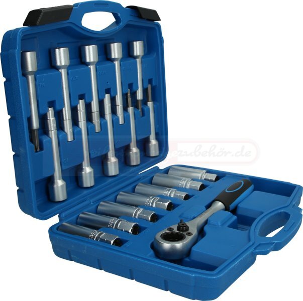 Damit wird ein großer Einsatzbereich abgedeckt. Im praktischen Kunststoff-Aufbewahrungskoffer ist das Spezialwerkzeug jederzeit griffbereit.