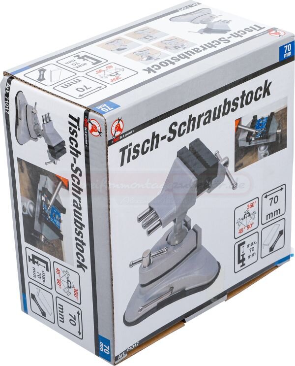 Tisch-Schraubstock | schwenkbar | Backen 70 mm | mit Vakuum-Saugfuß