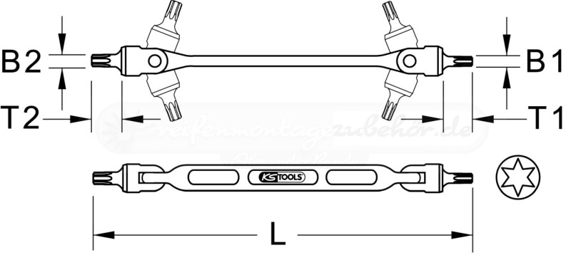 Torx-Doppel-Gelenkschlüssel, T30xT40