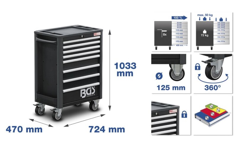 Werkstattwagen Profi Standard | 8 Schubladen | mit 234 Werkzeugen