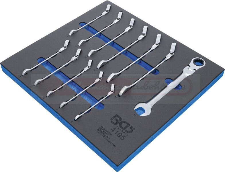 Werkstattwageneinlage 2/3: Ratschenring-Maulschlüssel-Satz | abwinkelbar | SW 8 - 19 mm | 12-tlg.