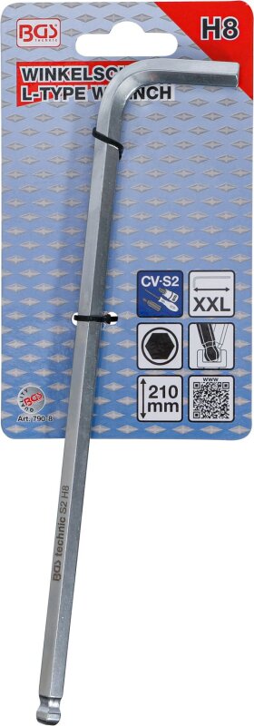 Winkelschlüssel | extra lang | Innensechskant / Innensechskant mit Kugelkopf 8 mm